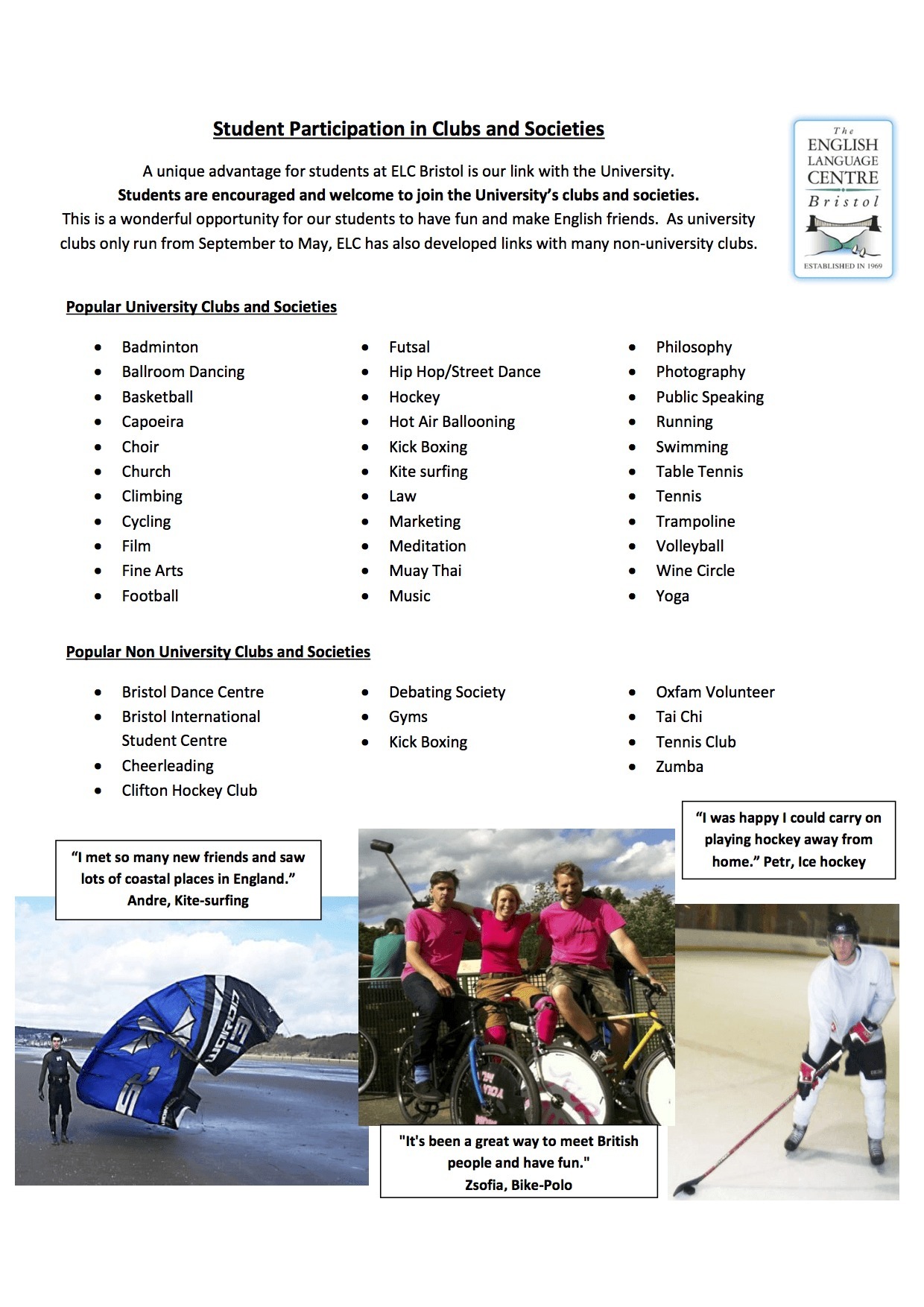 The Sunday Time 선정 '2014 영국내 가장 살기 좋은 도시 1위'에 선정된 Bristol의 부촌지역중 하나인 Clifton 에 위치한 ELC Bristol은 영국 전역의 많은 어학원중에 몇 안되는 마감이 있는 학교이다. 매년 평균 27개국에서 학생들이 ELC Bristol에서 공부 하고 있으며 주요 국적은 스위스, 스페인, 한국 등이다. ELC Bristol은 그룹학생들을 받지않아 국적을 균등하게 유지할 수 있다. 특히 만 18세 이상의 학생부터 입학이 가능하여 학생들사이에 친밀감 형성이 쉽고 우수한 학업분위기를 보장한다. 영국 TEN스쿨의 멤버로서 일반영어는 물론 IELTS와 캠브리지 시험반도 제공된다.