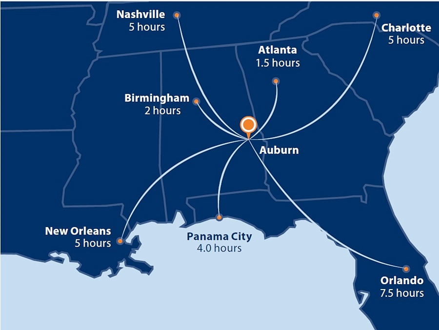 Auburn University(오번 대학교)는 앨라배마 주의 최고의 주립대학교로 미국 대학 순위 115위에 랭크 되어 있습니다. 140개 이상의 학부학위과정과 22개의 석사학위과정을 제공하고 있습니다. 특히, 우주항공, 농학, 공학, 건축, 교육학 등의 순위가 높습니다. 공학 및 비즈니스 전공 계열로는 늘 미국내 50-60위권을 항상 유지하고 있으며, 연방정부의 지원 및 투자가 많습니다. 특히, 미국대학교 내에서도NASA에 많은 엔지니어 및 과학자를 배출한 학교로도 유명합니다. 학교가 위치한 Auburn(오번)은 대학 도시입니다. 안전하고 쾌적한환경을 자랑하며, 살기 좋은 도시로 늘 10위 안에 들어 있습니다. 교내 기숙사, 식당, 체육시설, 도서관들은 최신식 시설을 자랑하며, 학생들이 학업 뿐 만 아니라 생활적인 부분에서도 만족도가 높으며 학생들의 삶의 질이 높은 대학 Top 10에 선정되었습니다. 현대/기아자동차를 비롯하여, 세계적인 자동차 기업들(도요타, 혼다, 벤츠 등)이 Auburn과 가까운 곳에 위치하여, 대학교와 기업간의 산학 협력도 활발하게 이뤄지고 있습니다. 이는 학생들이 졸업 후, 취업에도 큰 도움을 주고 있습니다. 또한 오번대학교는 앨라배마의 최고 주립대로 오번, 몽고메리에 거주하는 주재원의 자녀들이 진학을 많이 하고 있는 대학으로도 유명합니다. 유명 졸업생인 Apple CEO인 팀 쿡(Tim Cook)이 오번 대학교에서 산업공학 학사 학위를 받았습니다.