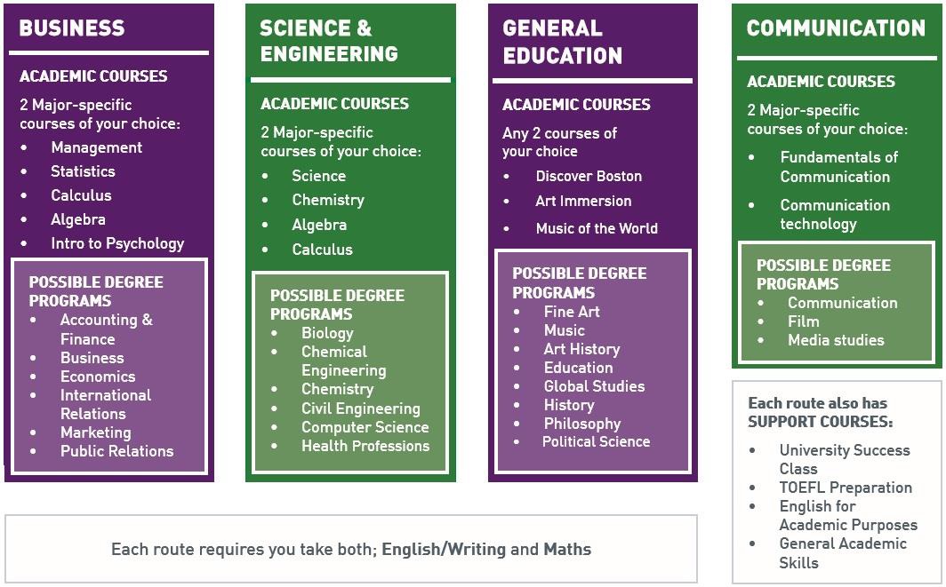 편입 패스웨이 프로그램으로 Curry College에서 2학기(1학년)을 마치고 상위권 학교로 편입을 목표로하는 Open Choice Pathway