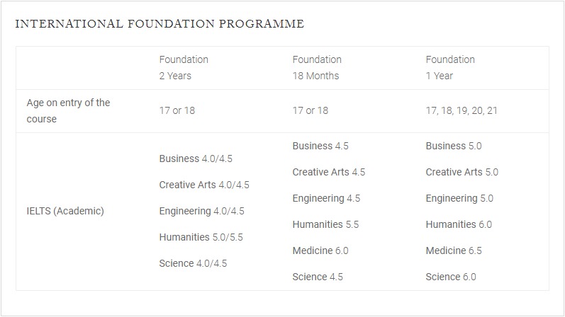 International Foundation 1년 코스 (9월 시작) | £ 26,305 |